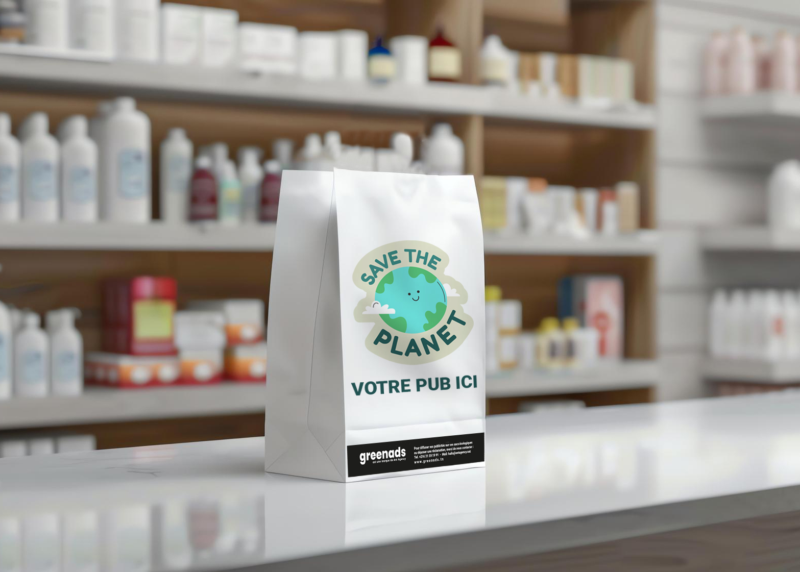 Le sacs publicitaire Greenads® est conçu pour maximiser l'impact de vos campagnes de communication en pharmacie, en mettant en valeur votre engagement envers la nature.